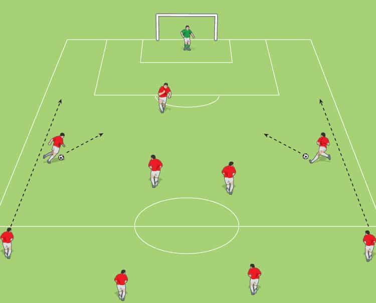 일반적으로, 인버티드 윙어는 드리블 및 패스 기술이 뛰어난 선수들로 구성됩니다. 그리고 본질적으로는 중앙 공간에서 활동하면서 공을 가지고 들어오는 것이 중요합니다. 따라서, 풀백은 더 많이 공격에 참여해야 합니다. 풀백은 측면 외부 라인을 타고 올라가, 인버티드 윙어가 내부로 들어가 공격을 할 때, 측면 외부 라인에 빈 공간을 남기지 않도록 해야 합니다.