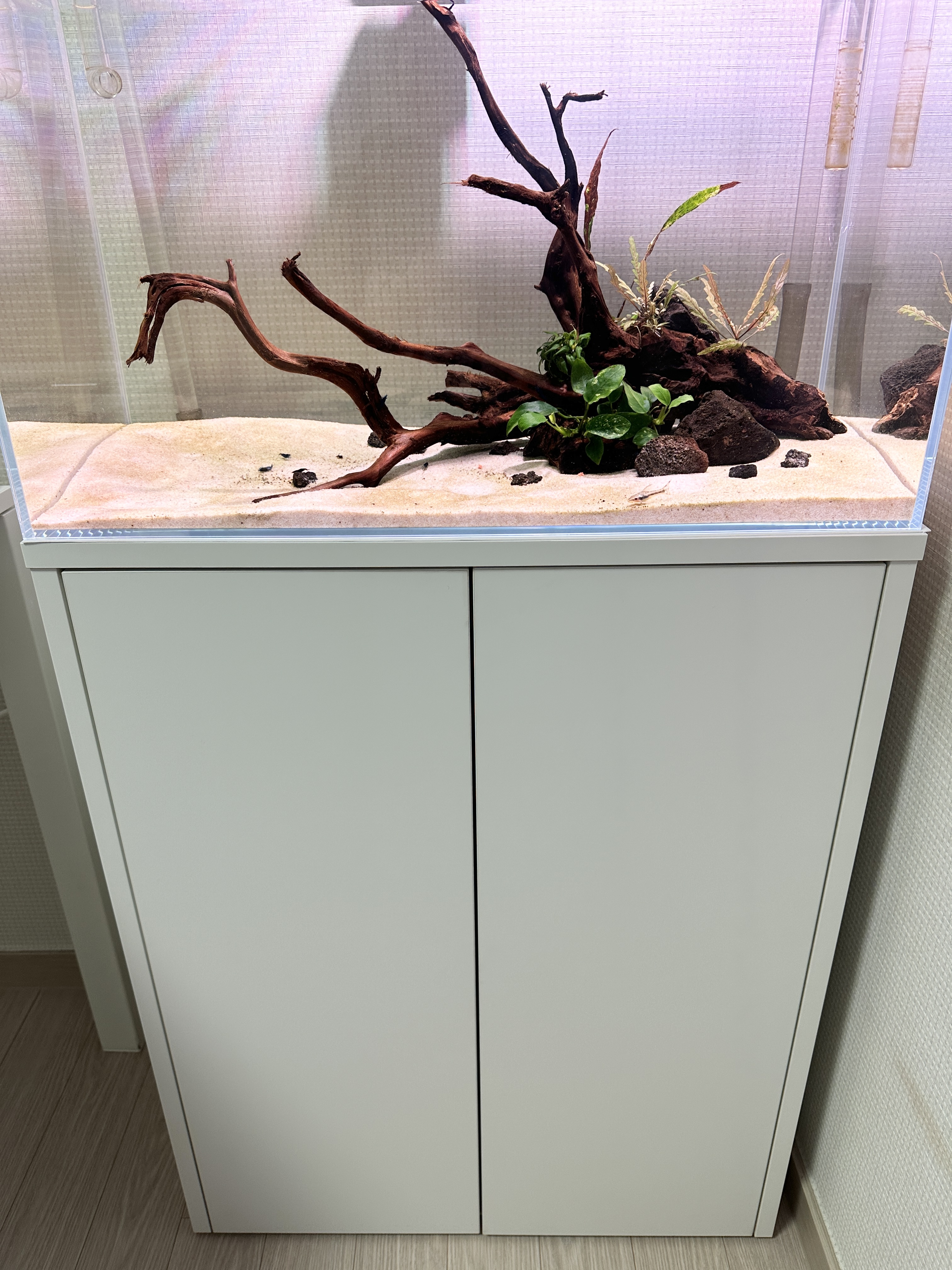 현재 어항을 세팅하여 사용하고 있습니다. 이 방의 다른 가구들이 흰색이라서, 흰색으로 주문했습니다.