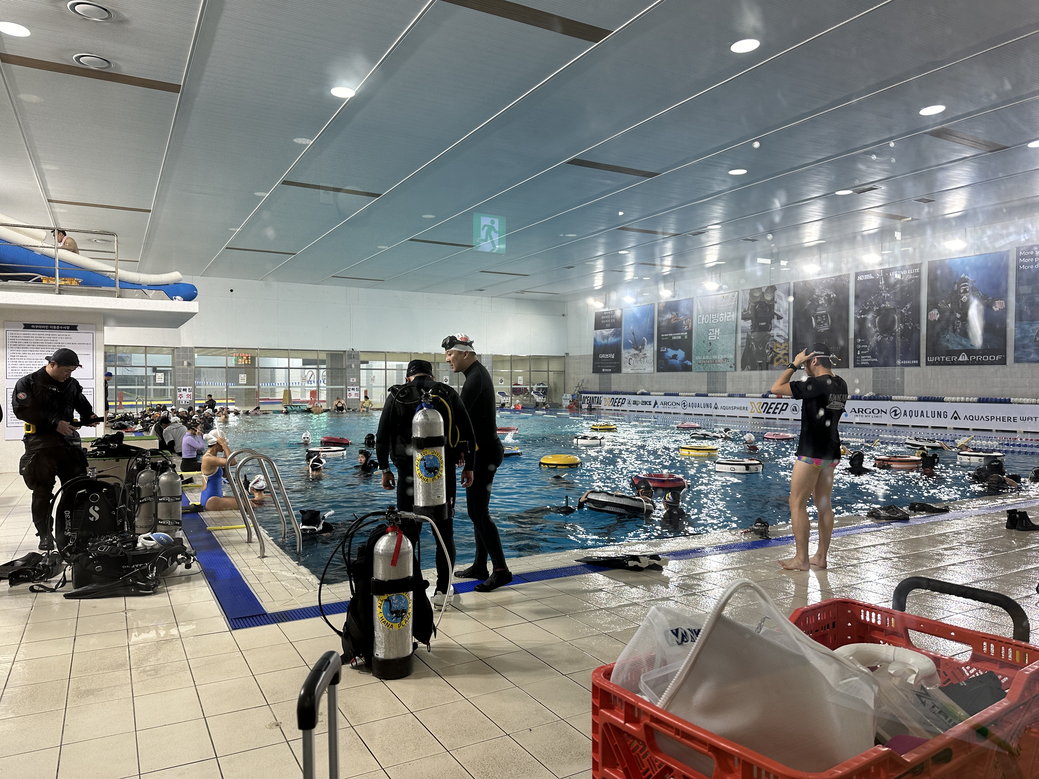 스태틱(숨 참기), 5m 수직하강, 다이나믹(물 속에서 수평 잠영), 덕다이빙을 배웠습니다. 스태틱 1분 30초 참기와 다이나믹은 1회차 레슨에서 통과했습니다. 이제부터는 강사님이 레슨이 있을 때에 함께 입장하여 자율 연습이 가능해졌습니다!