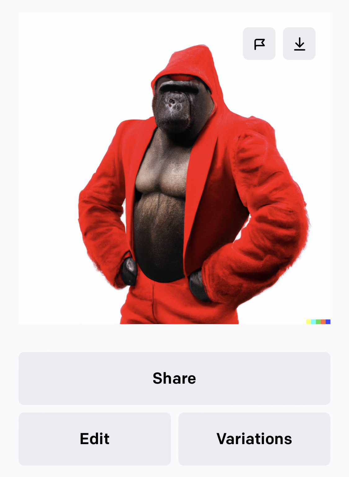 첫번째 사진에 있는 섹시 고릴라가 마음에 들어 클릭해보니 큰 사진으로 볼 수가 있습니다. 더 마음에 드는 섹시고릴라를 위해 오른쪽 하단의 변주(Variation) 버튼을 눌러봅니다.