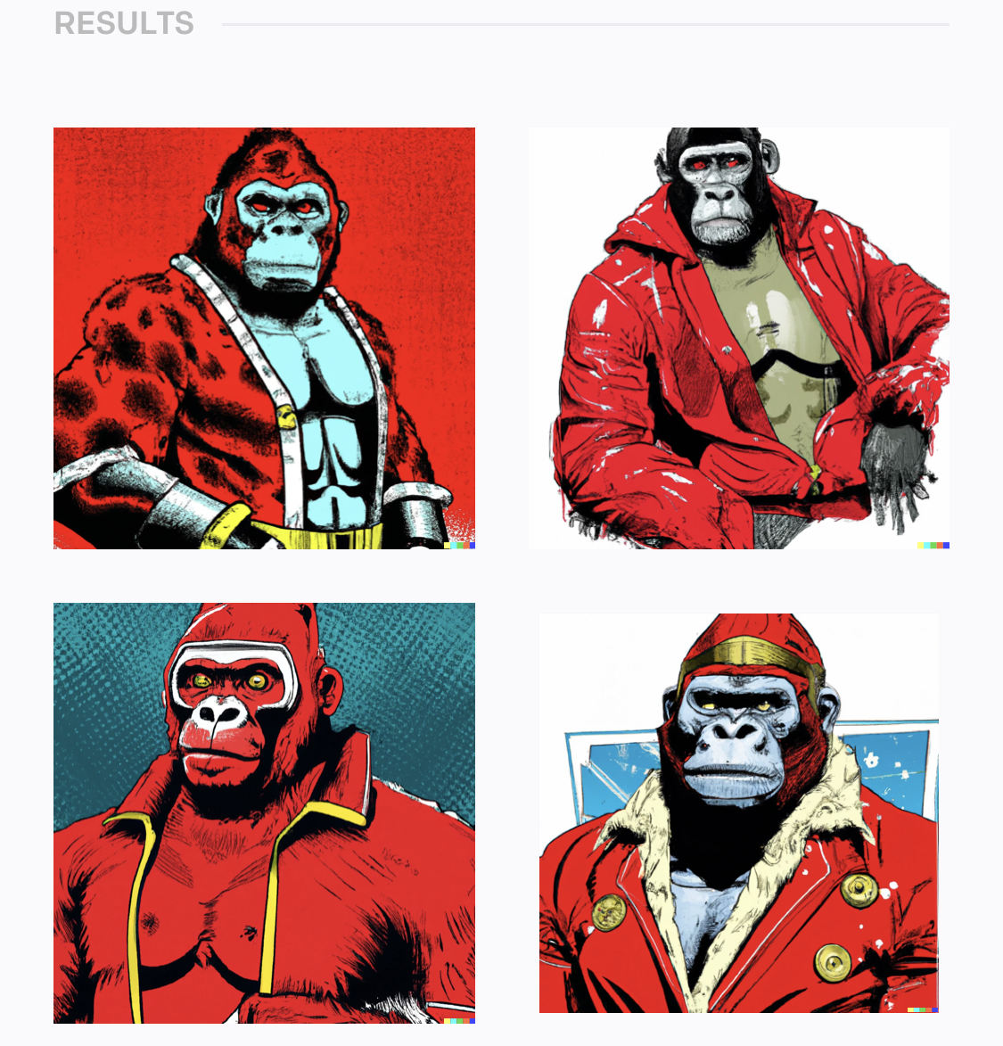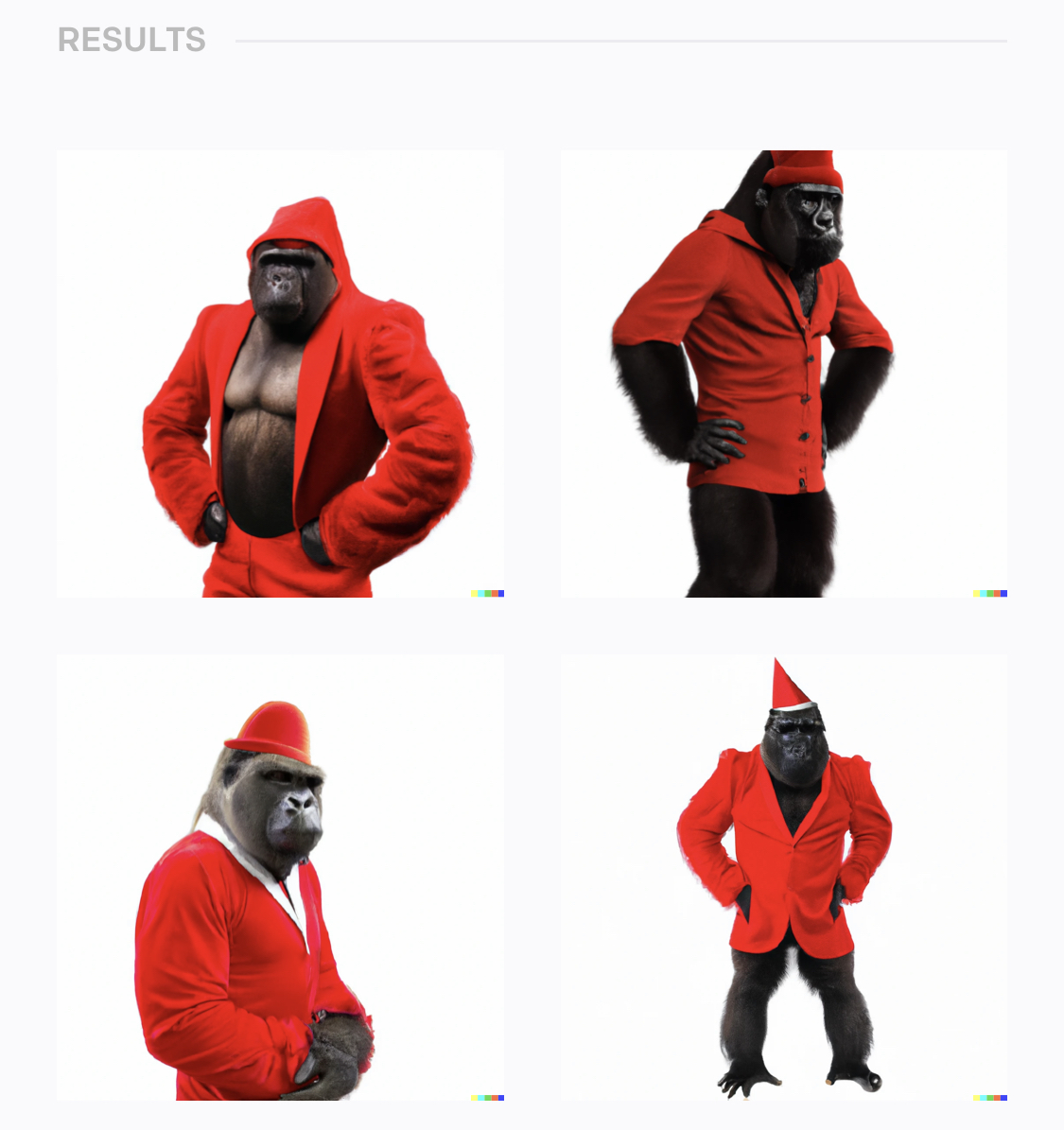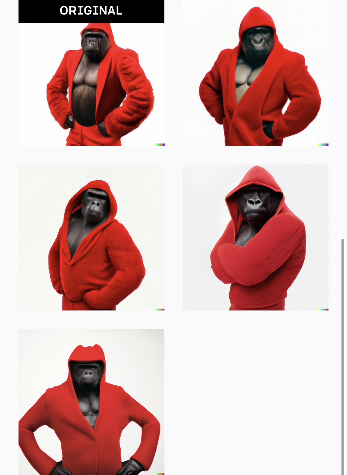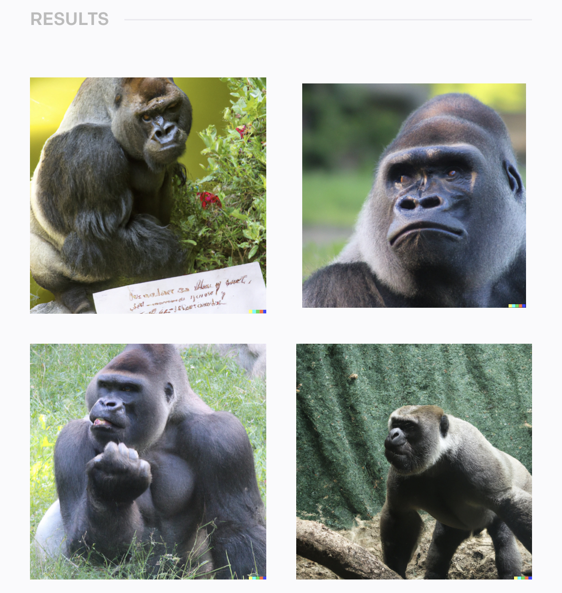 사진과 비슷한 느낌의 고릴라들이 나오네요. 자연스러운 것도 있고 상당히 부자연스러운 것도 있습니다.