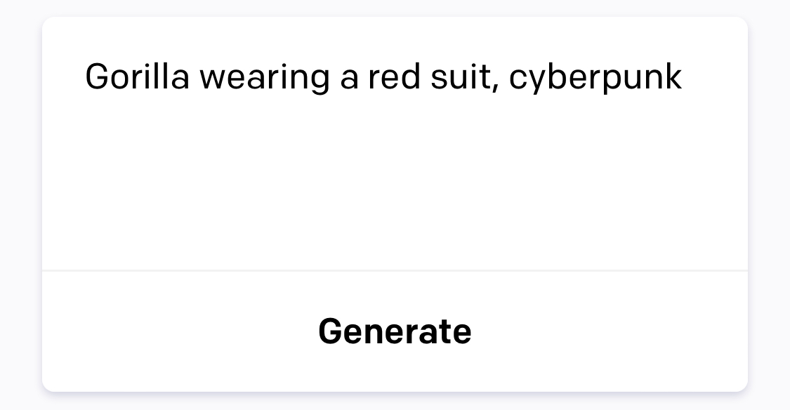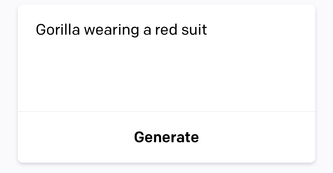로그인하면 아래와 같이 원하는 그림을 묘사해보라고 합니다. 영어로 ‘고릴라’ 한 단어를 입력해봤습니다.