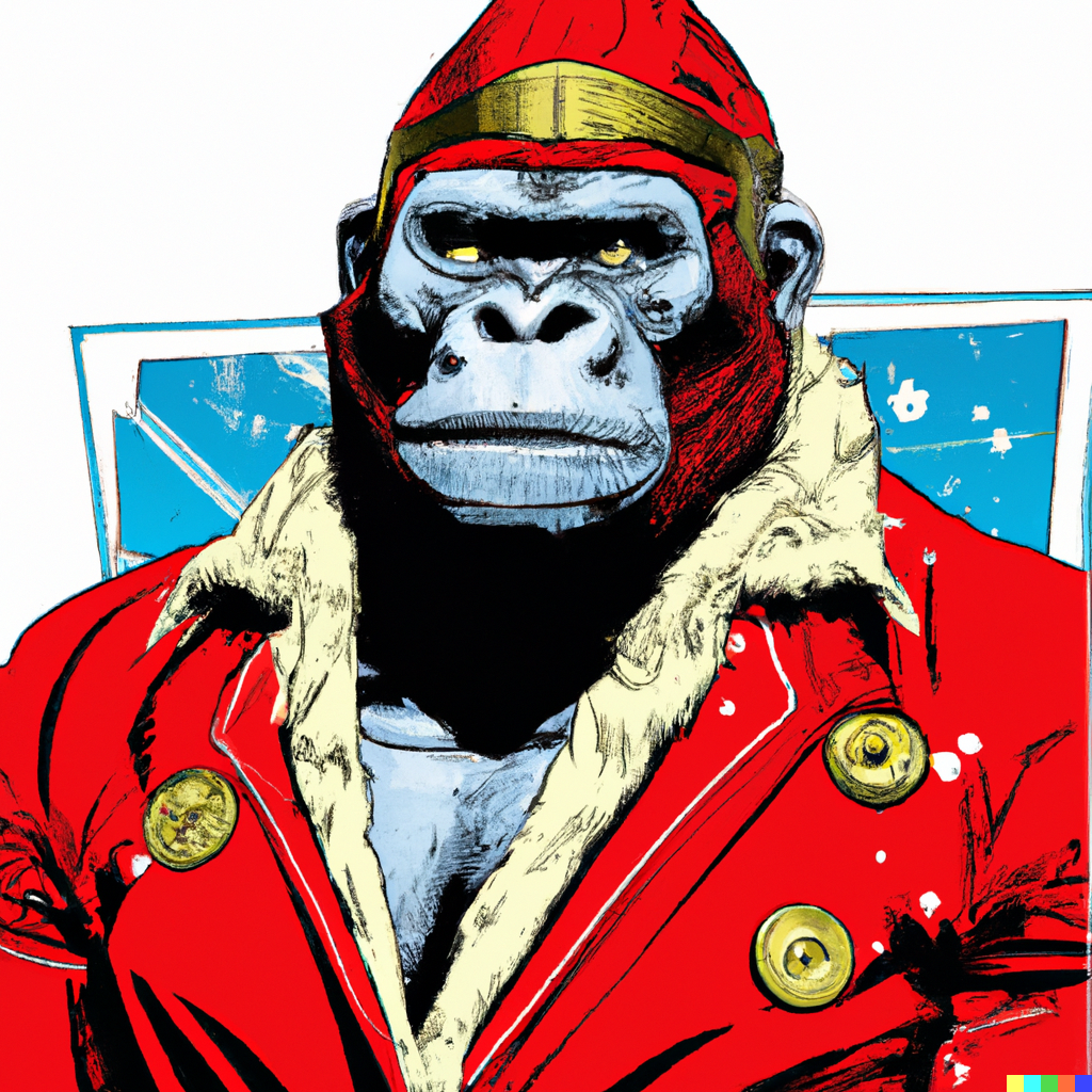 빨간 정장을 입은 고릴라가 궁금해집니다. ‘빨간 정장을 입은 고릴라’라고 적어봤습니다.