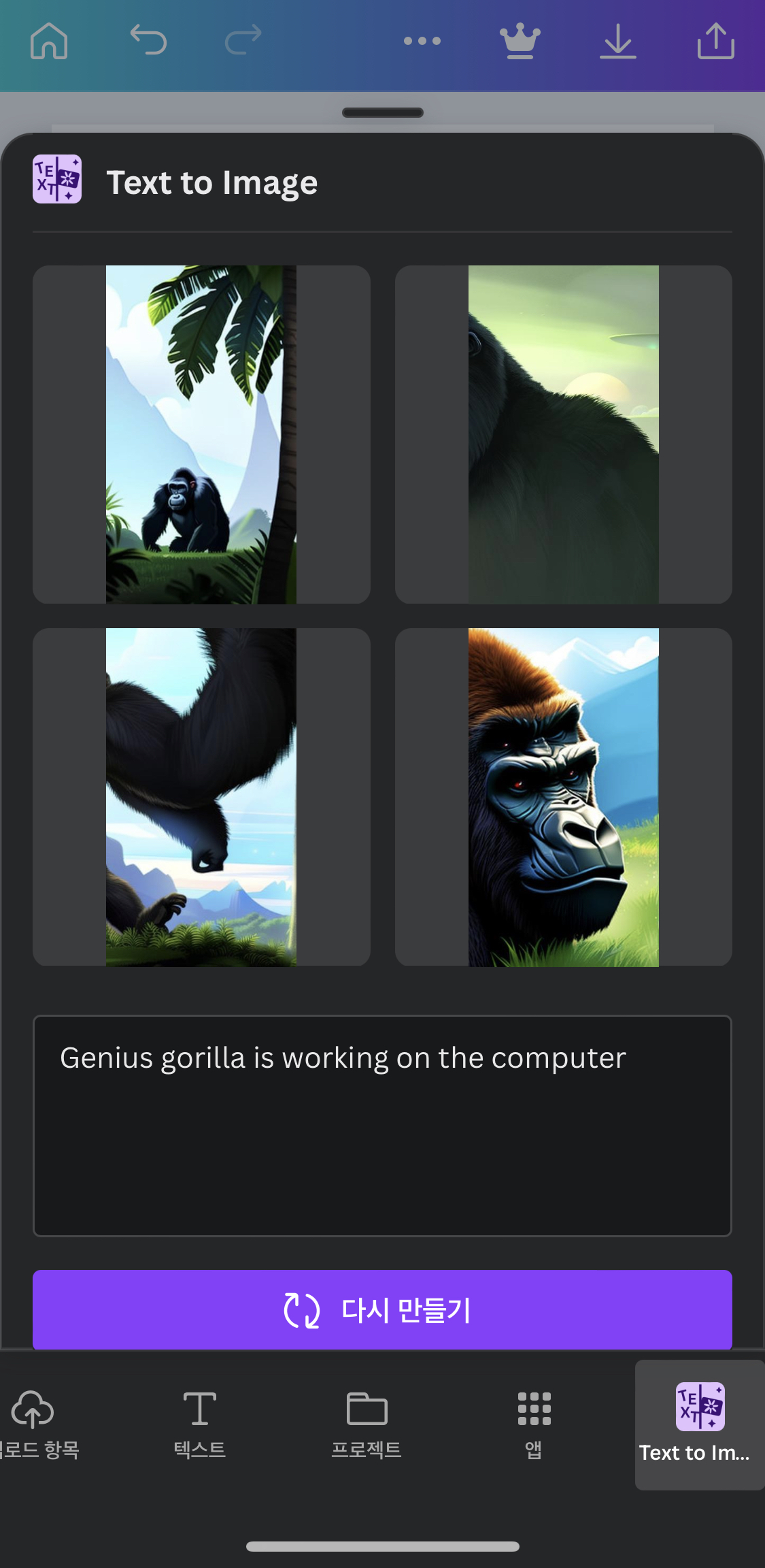 칸바의 최대 장점이지 않을까 싶은데요. 이렇게 생성한 그림을 가지고 바로 디자인 작업을 할 수 있습니다.