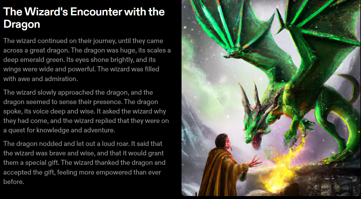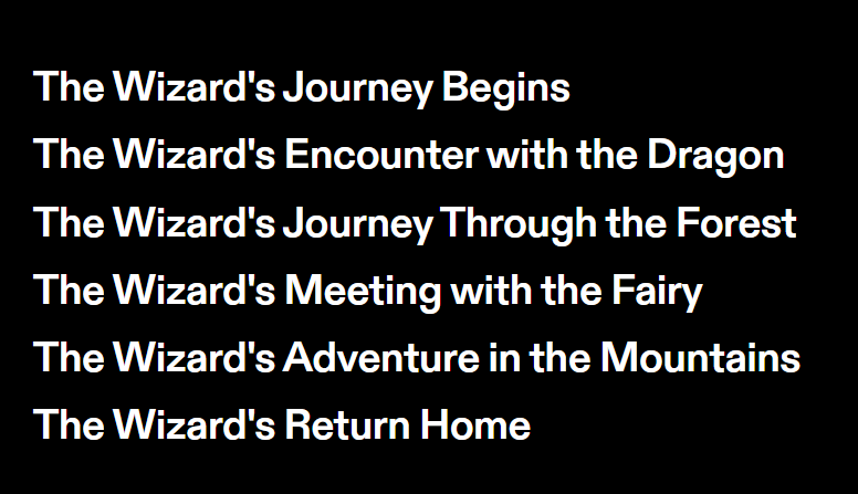 + 발표자료가 아닌 이야기를 생성할 수도 있어 마법사의 모험을 주제로 이야기를 만들어보라고 했습니다. 음... 목차부터 봐도 이것을 그대로 이용할 수는 없겠다는 생각이 들죠?