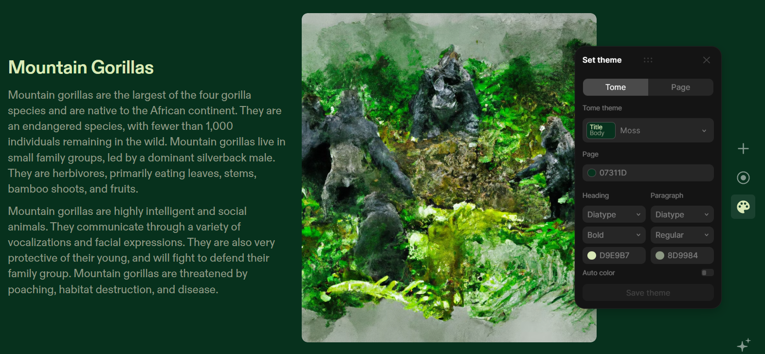 아래의 링크는 자동으로 생성된 산악고릴라에 대한 발표자료인데요. 아래 이미지 클릭 시 피피티를 볼 수 있습니다.